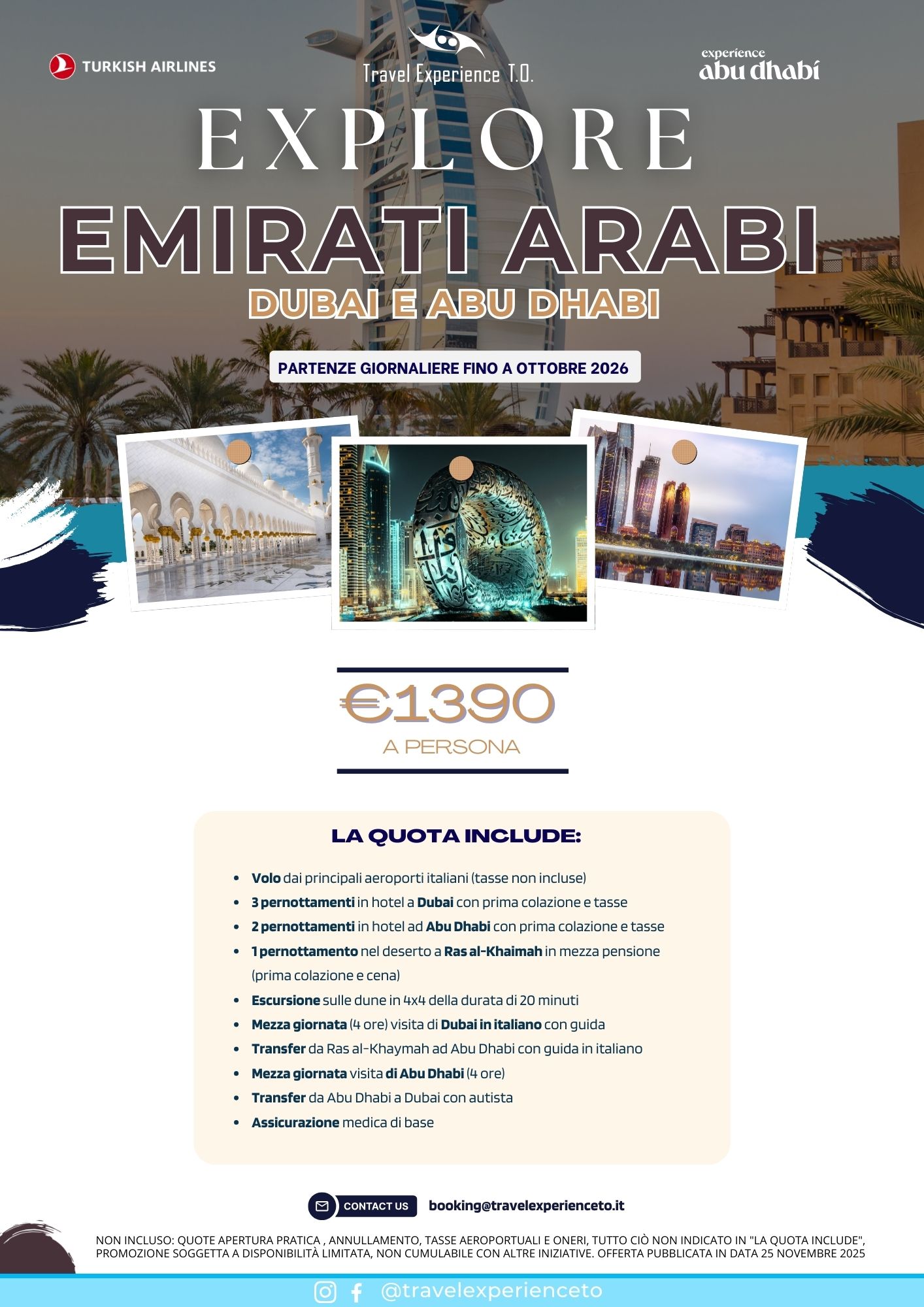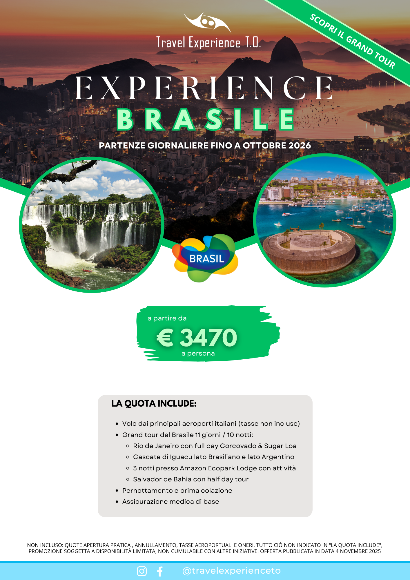 Le Esperienze di Viaggio sono momenti che il nostro team di esperti, diffuso su tutto il territorio nazionale attraverso una rete capillare di Agenzie, contribuisce a realizzare, garantendo qualità di prodotto, chiarezza nei termini, trasparenza nell’offerta, passione nel suggerire soluzioni e itinerari.